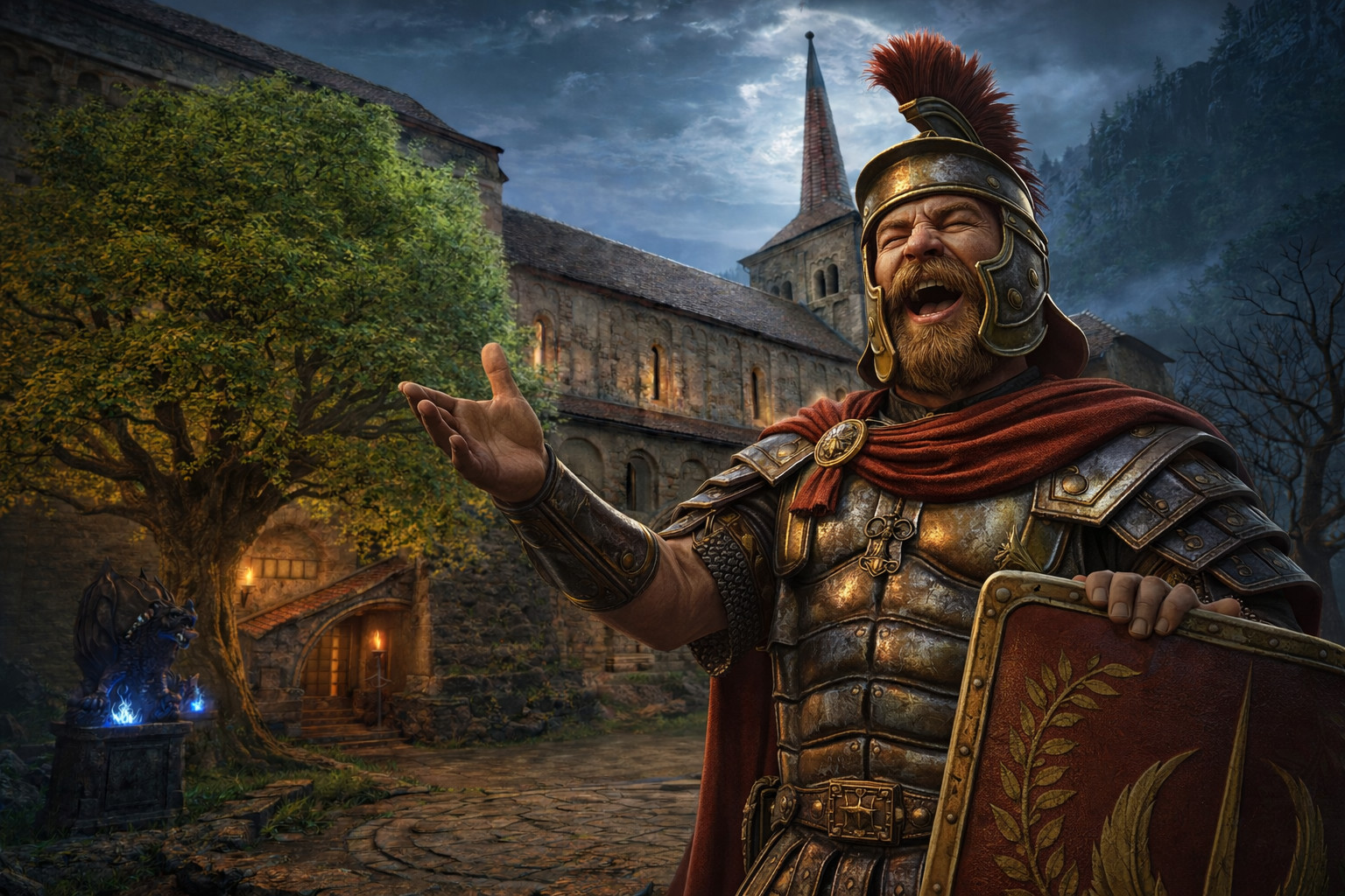 Poème en mémoire de nos anciens cultes gallo-romains. Cette chanson utilise un personnage imaginaire et immortel pour mettre en avant le fait que, souvent, en Europe de l’Ouest, les lieux chrétiens importants sont souvent bâtis sur d’anciens temples dédiés aux divinités anciennes (les Celtes mais aussi les… Romains, d’où le choix de ce nom de personnage et de ce village du canton de Vaud célèbre pour son abbatiale).