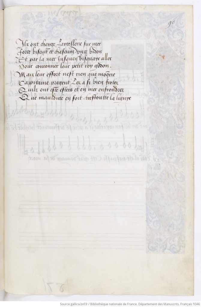 BNF Manuscrit de Bayeux “Chansons normandes du XVe siècle” , pages 89v et 90r.